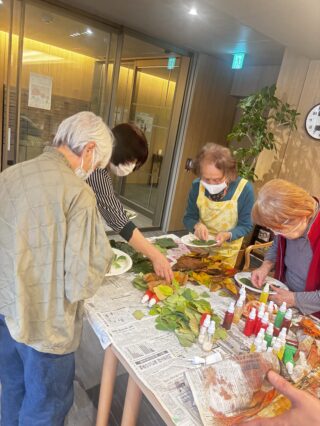 10月園芸レクリエーション「落ち葉で染めるストールづくり」
