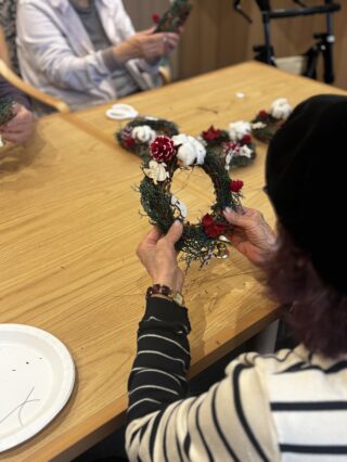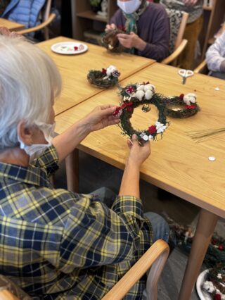 11月園芸レク「クリスマスリースづくり」を開催しました